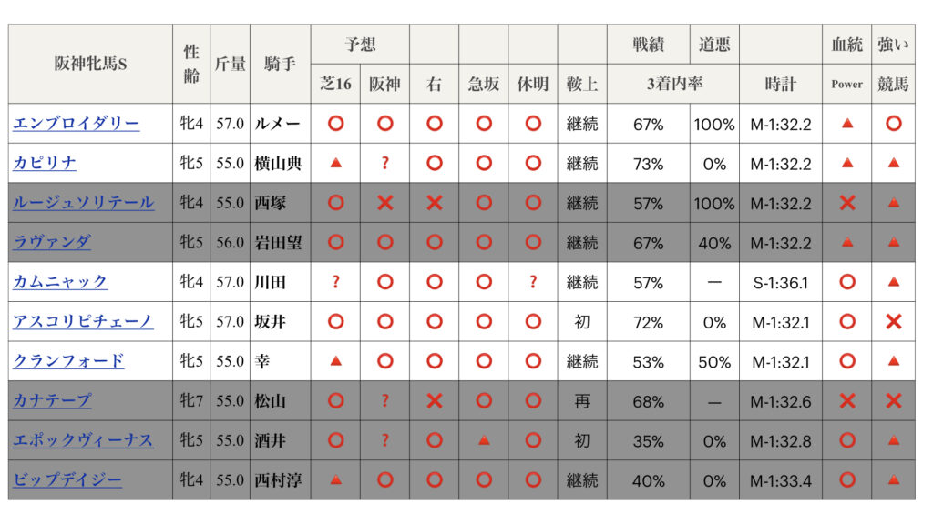 阪神牝馬S2026推奨馬5頭