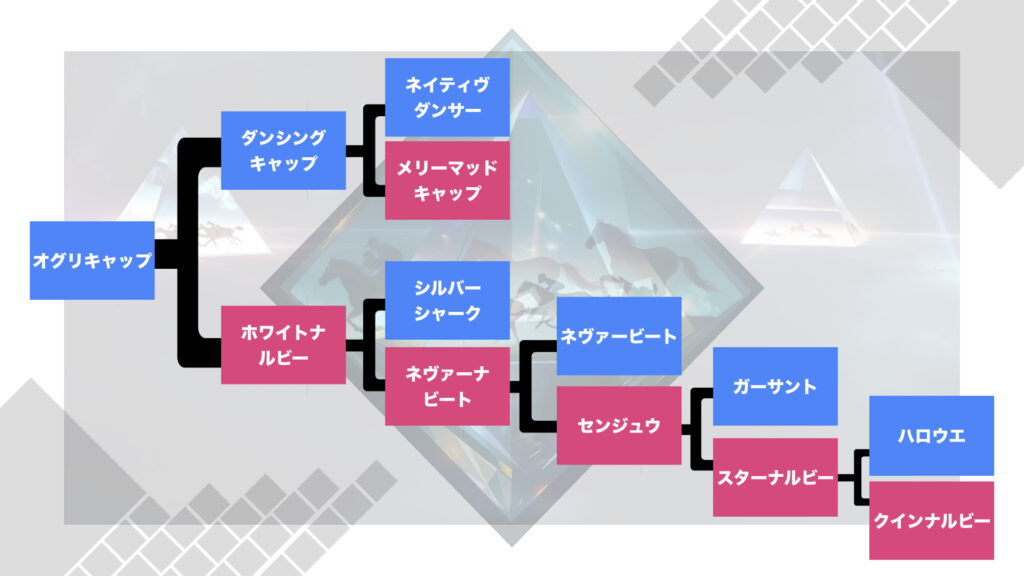 この記事では、筆者自身のおさらいも兼ねて現代まで続くオグリキャップの血統図を整理したものを掲載したいと思います。