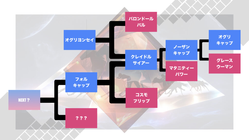オグリキャップが隔世遺伝を披露してくれたようにいつの日かこの血統から新たな怪物が生まれる日が来るかもしれない。
