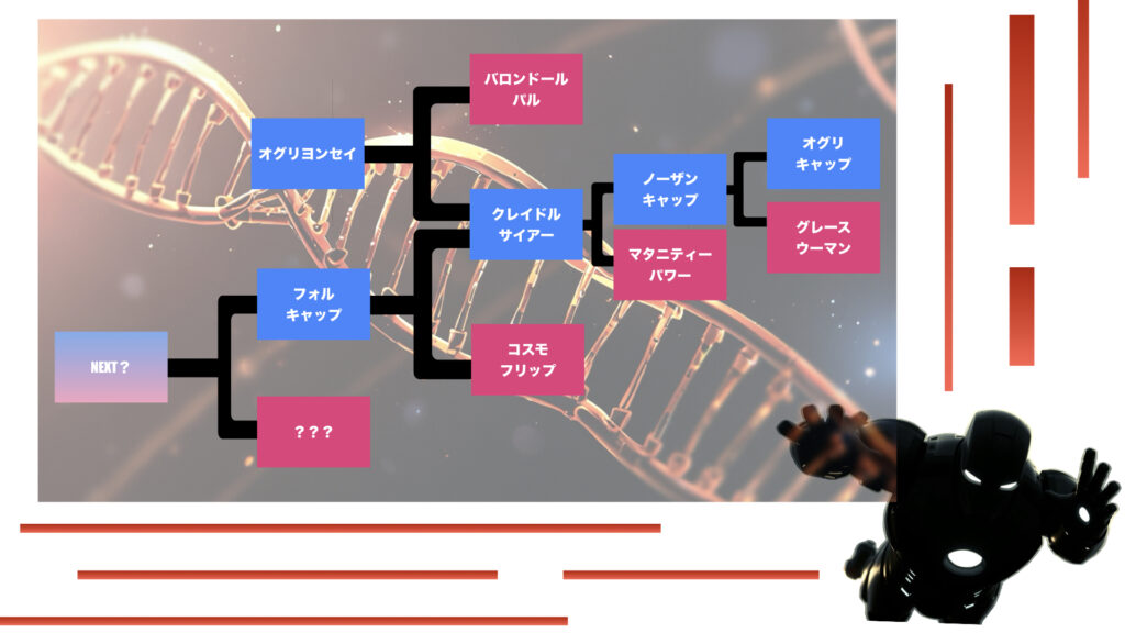 早速だが、2025年最新版のオグリキャップの血統図を御覧入れよう。オグリキャップの父母・親戚・後継産駒をまとめたのが上記スライド。