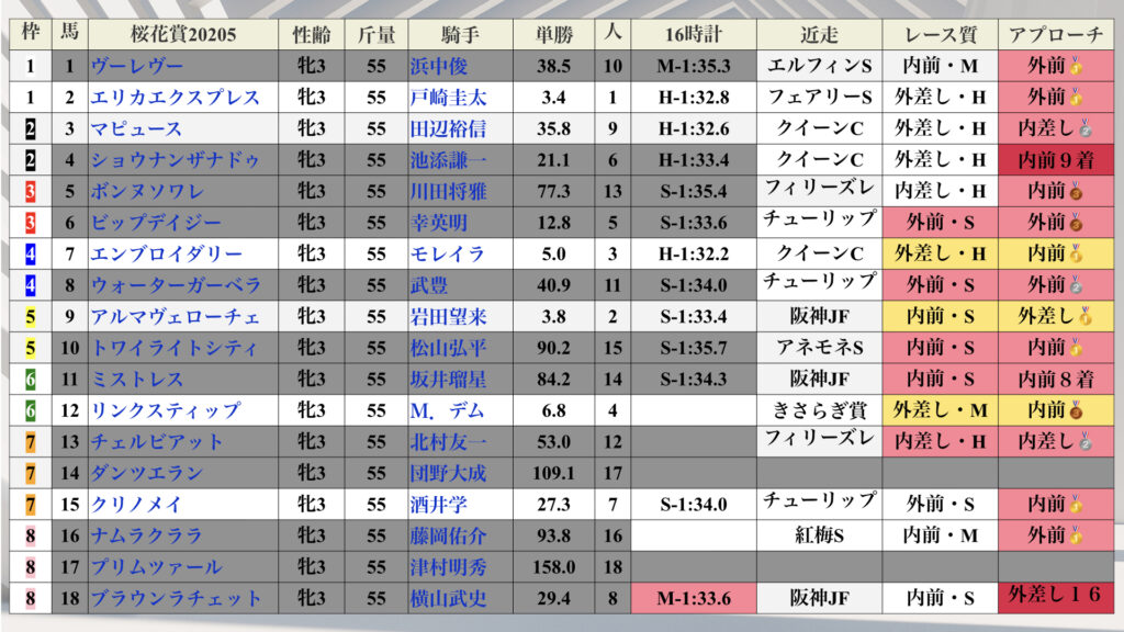 【強い競馬をできる馬を探せ!】桜花賞Sトラックバイアス分析