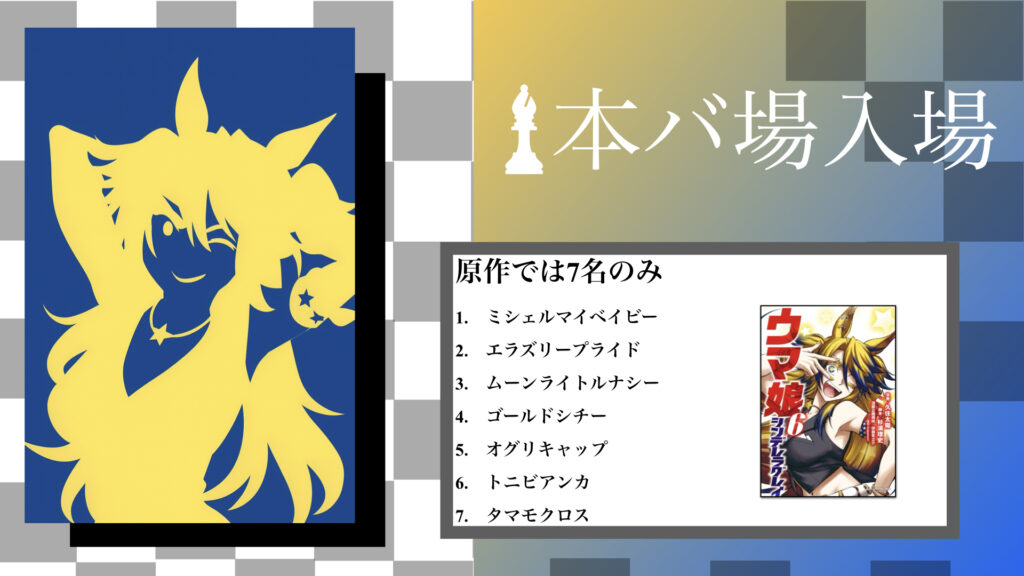 オープニングを挟んだ本編以降も原作にないシーンは止まることなし。とりわけオベイユアマスターの本バ場入場の追加シーンは興奮するなという方が無理というもの。