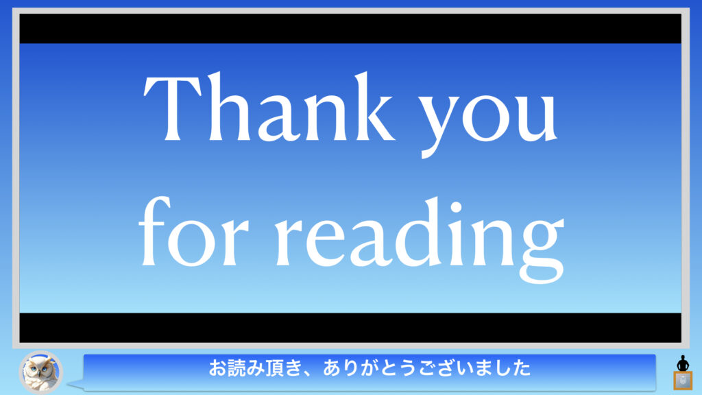 それでは本プレゼンは以上となります。ご愛読いただき誠にありがとうございました。また別の記事でお会いしましょう。